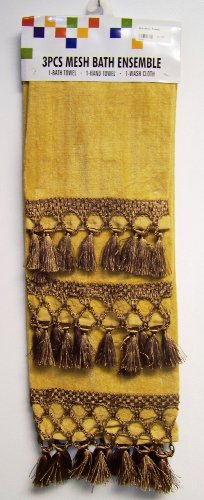 Gold Color 3 Piece Bathroom Towel Set Fringe Tassels Review