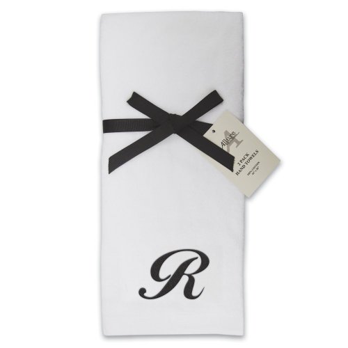 Allure Home Creations 2-Pack 100-Percent Cotton Monogrammed Velour Hand Towels, White, R Feature