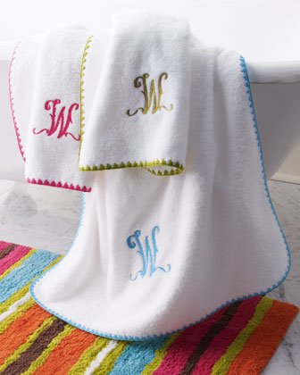 Just a touch of color gives these plush white towels ample appeal. Made in the USA of 550-gram Egyptian cotton terry. For shell-stitched edging, choose Cherry Blossom, Key West Lime, or Turquoise. Machine wash. Optional monogram on bath and hand towel i...